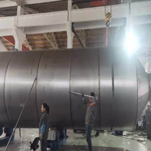 工業廢氣經離心風機輸送至脫硫塔,經脫硫塔內部的合金托盤,格柵,噴淋等配件進行對氣體的處理,從而達到******對工業廢氣的排放標準。